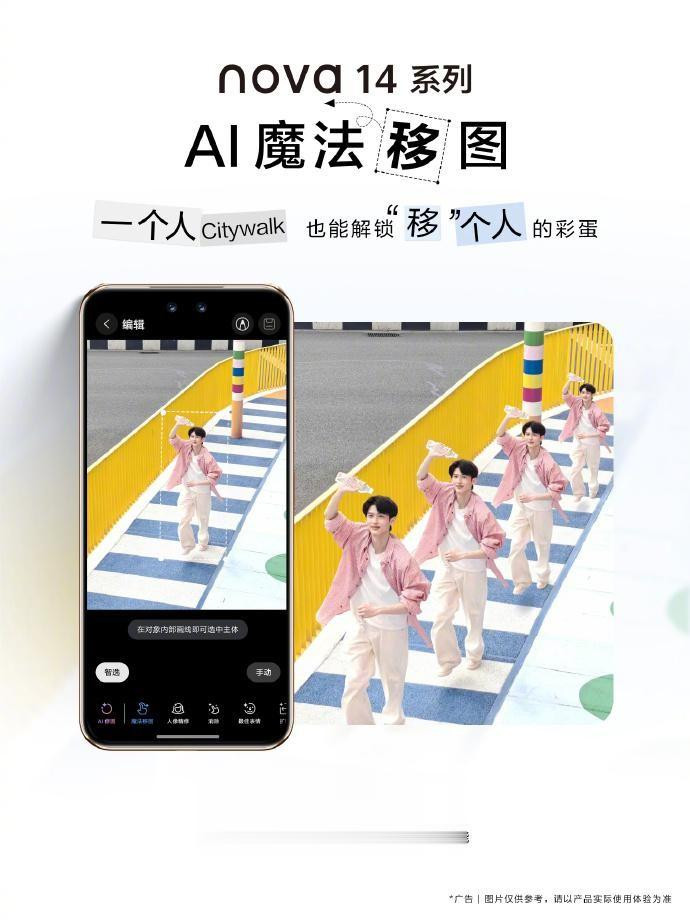 拍照构图不理想?朋友站太远?月亮太小不够震撼?别急,nova 14系列全系支持AI魔法移图功能,让修图像“拖拽文件”一样简单。